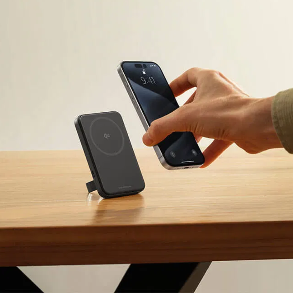 Вбудована підставка дає змогу використовувати повербанк як опору з одночасною можливістю заряджання пристрою. Поставте вертикально RAPID Magnetic Power Bank, щоб здійснити відеодзвінок. Або покладіть горизонтально і насолоджуйтеся переглядом фільму.