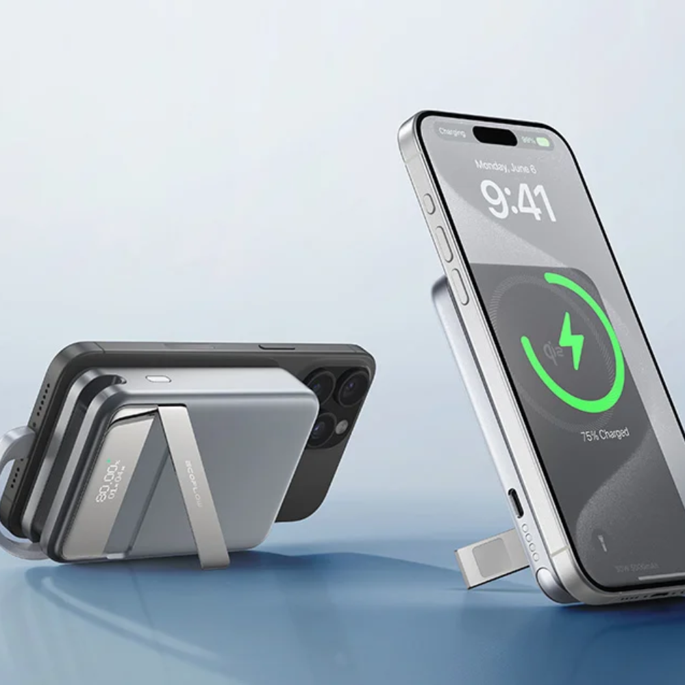 Вбудована підставка дає змогу використовувати повербанк як опору з одночасною можливістю заряджання пристрою. Поставте вертикально RAPID Magnetic Power Bank, щоб здійснити відеодзвінок. Або покладіть горизонтально і насолоджуйтеся переглядом фільму.