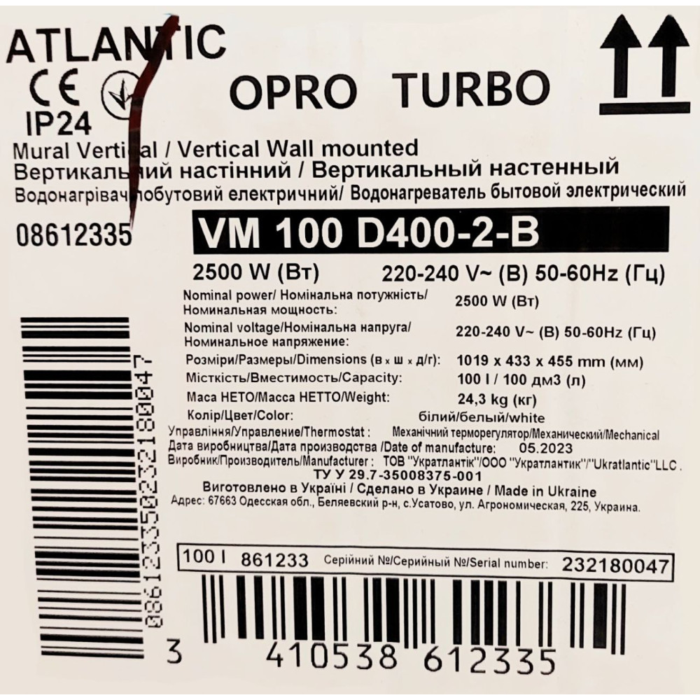 Atlantic O'Pro Turbo VM 100 D400-2-B (2500 W) – це сучасний бойлер з накопичувальним принципом роботи, який ідеально підходить для сімей з 4-5 осіб. Бойлер має місткість 100 літрів, що дозволяє нагріти достатню кількість води для всіх членів сім'ї. Бойлер оснащений інноваційною системою нагріву, яка дозволяє швидко і ефективно нагріти воду. Бойлер також має ряд захисних функцій, які гарантують його безпеку і довговічність.