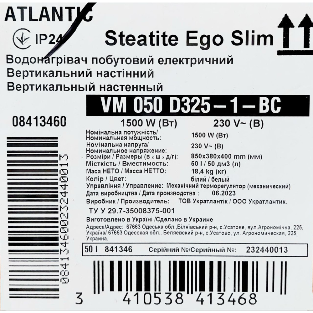 Atlantic Steatite Ego Slim VM 050 D325-1-BC (1500 W) – це компактний і ефективний накопичувальний бойлер об’ємом 50 літрів, для родини з 2 осіб. Бойлер вузької форми, що дозволяє його встановити у обмеженному просторі. Головна перевага Atlantic Steatite Ego Slim - сухий ТЕН на 1500 Вт, котрий встановлений у колбі та не контактує з водою. Це підвищує термін служби пристрою.