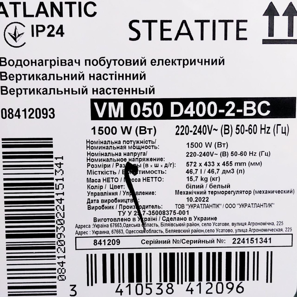 Atlantic Steatite Elite VM 050 D400-2-BC (1500 W) – це якісний та надійний бойлер, який ідеально підходить для домашнього використання родинам з 1-2 осіб. Головна перевага моделі Steatite Elite це сухий ТЕН 1500 Вт – довговічний і надійний тип нагрівача, який знаходиться у колбі та не контактує з водою, що запобігає корозії та накипу.