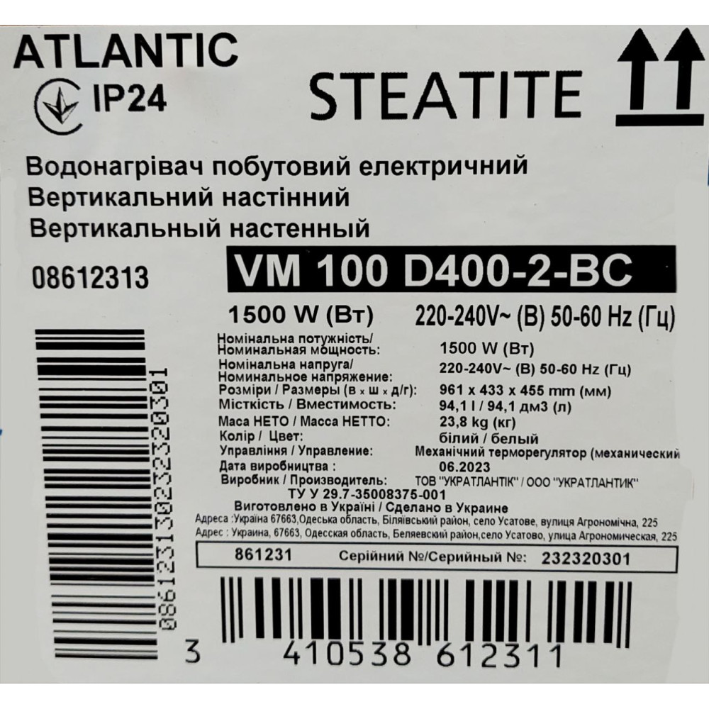 Atlantic Steatite Elite VM 100 D400-2-BC (1500 W) – це якісний та надійний бойлер, який ідеально підходить для домашнього використання родинам з 3-4 осіб. Головна перевага моделі Steatite Elite це сухий ТЕН 1500 Вт – довговічний і надійний тип нагрівача, який знаходиться у колбі та не контактує з водою, що запобігає корозії та накипу.