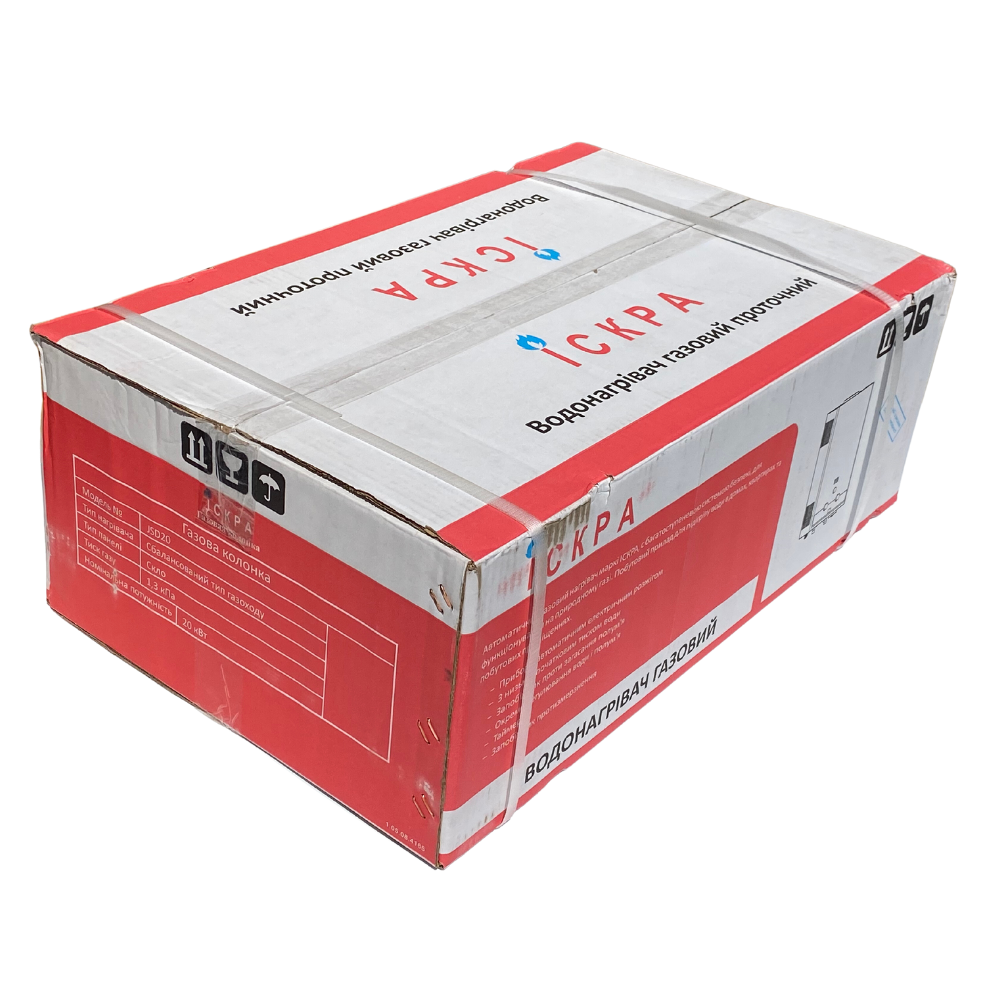 Газова колонка Іскра з малюнком "Вогонь" – водонагрівач потужністю 20 кВт, з відведенням продуктів згоряння через димар. Особливою відмінністю є наявність дисплея та 3 ручок управління: регулювання висоти полум'я, напору води та перемикач "зима-літо" для зручнішого налаштування водонагрівача в різні сезони. На дисплеї відображається потокова температура води.