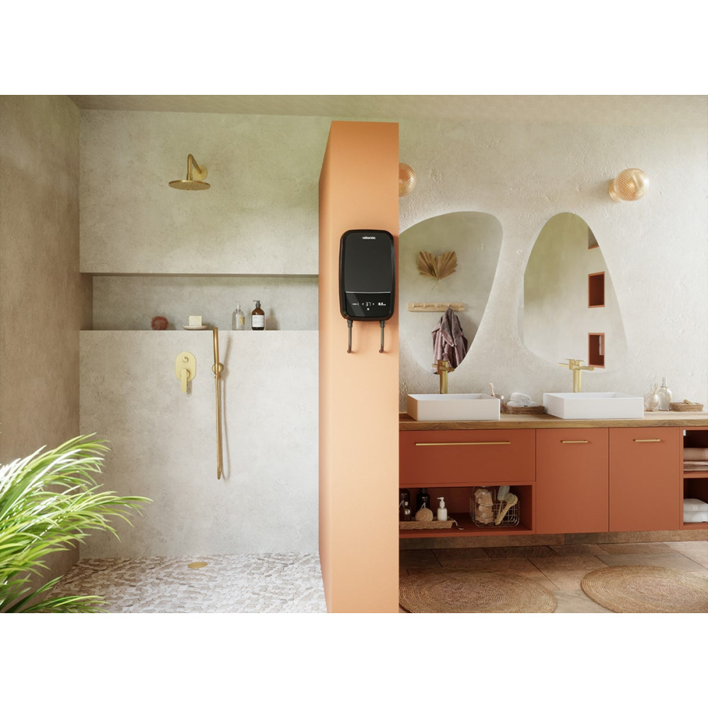 Проточний водонагрівач Atlantic Tempo Max Multi 8.5 kW ефективно працює навіть при невисокому потоці води, що становить лише 2,2 літра на хвилину.