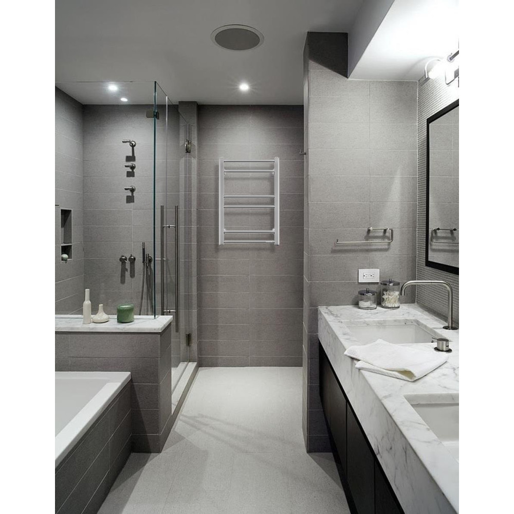 Компактні розміри рушникосушки та невелика вага 3 кг дозволяють без зайвих зусиль встановити її у будь-якій ванній кімнаті, навіть за умови обмеженого простору. Потужність у 100 Вт забезпечує швидке та рівномірне сушіння рушників, споживаючи при цьому мінімум електроенергії. Завдяки продуманій конструкції з рознесеними трубами можна розвішувати кілька рушників одночасно.