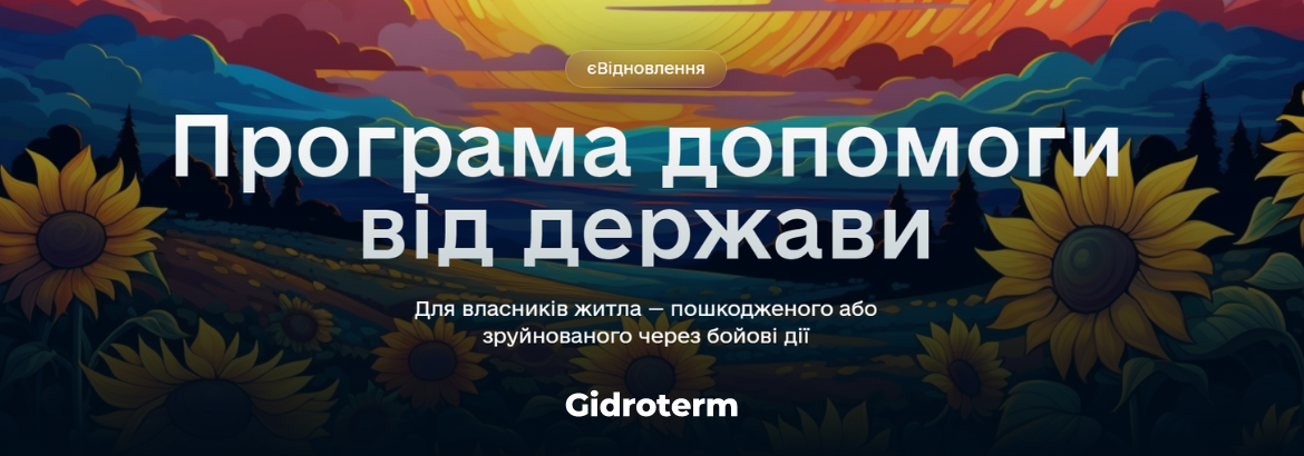 Gidroterm став участником державної програми з відбудови житла єВідновлення erecovery.diia.gov.ua, яка передбачає грошову допомогу українцям, житло яких було пошкоджено або зруйновано через бойові дії.