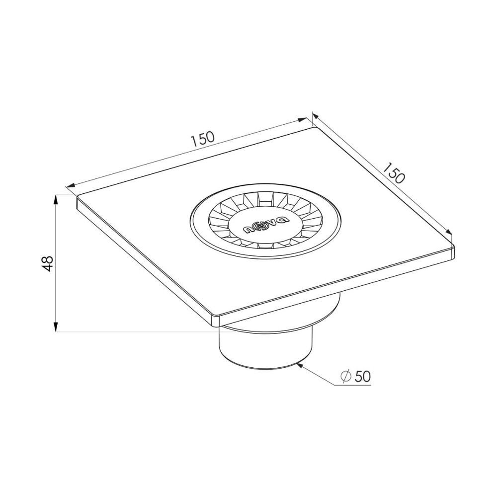 Трап для душа 150x150 мм Nova 5030 виготовлений з високоякісних матеріалів, які забезпечують його довговічність і надійність. Пластикова основа трапа стійка до корозії та ударів. Трап має вертикальний вихід діаметром 50 мм, що дозволяє легко підключити його до каналізації.