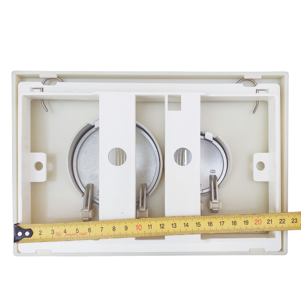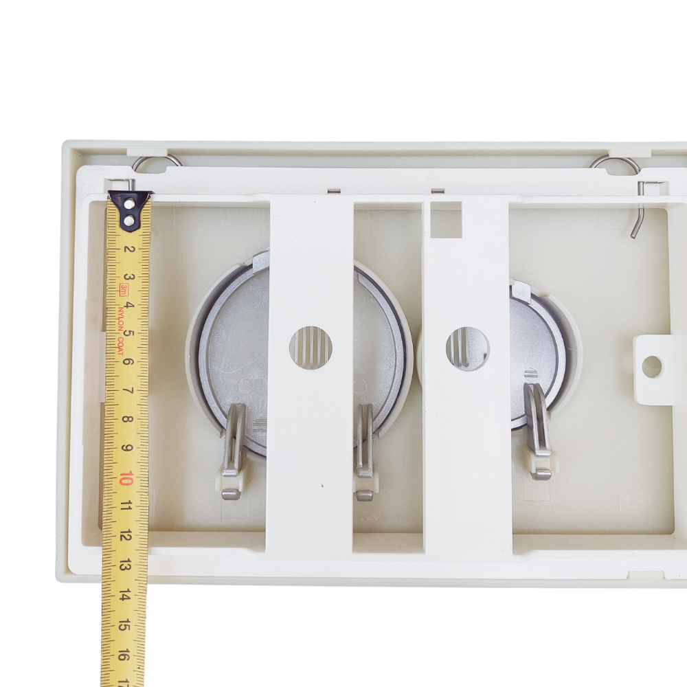 Nova 7311 - кнопка для інсталяції, котра призначена для роботи із системою подвійного змивання унітаза. Накладна панель виготовлена з міцного пластику в сірому оформленні, має прямокутну форму та дві круглі кнопки.