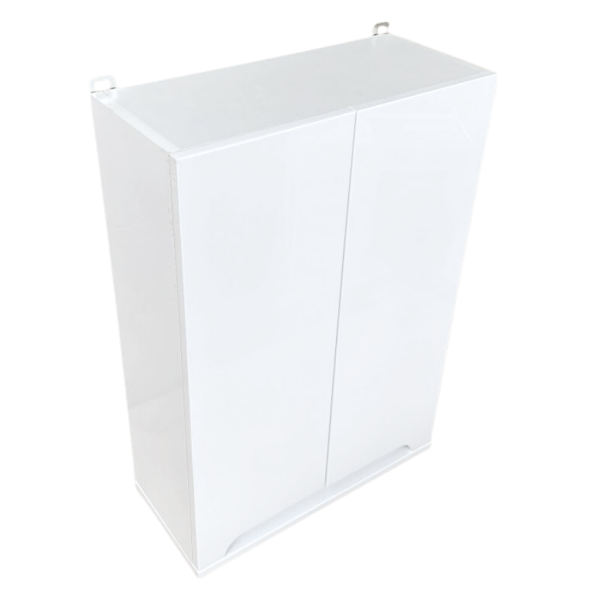 Шафа виготовлена з міцного ДСП білого кольору. Встановлюється навісним способом, що дозволяє заощадити місце і створити легкість в інтер'єрі.
