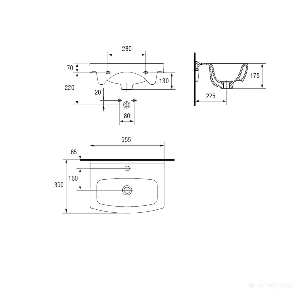 Виготовлений з якісної кераміки у білому кольорі, даний умивальник має овальну форму і розміри 555х390 мм.