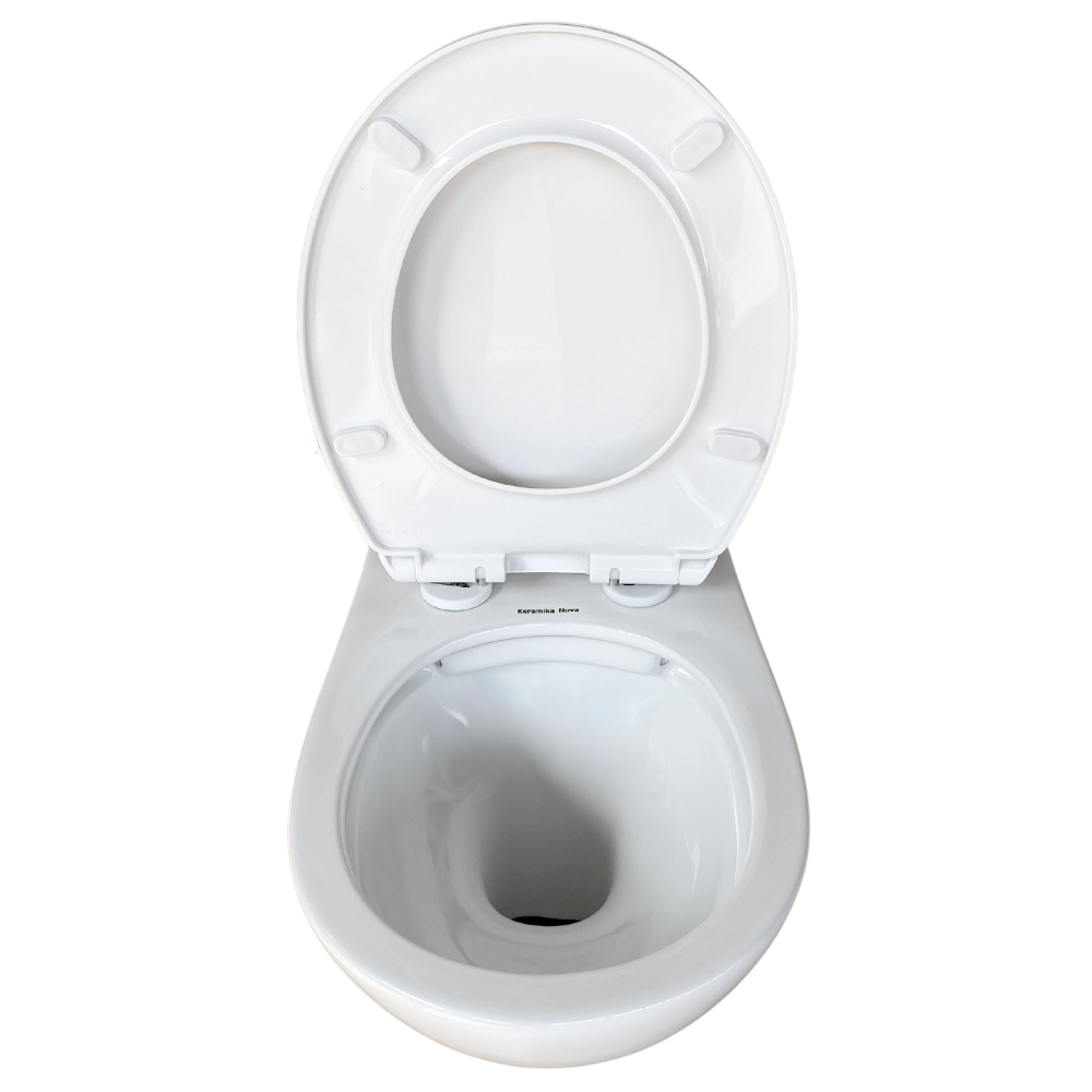 Keramika Nova W105 – це підвісний безобідковий унітаз, призначений для встановлення на сантехнічну інсталяцію. Унітаз виконаний з високоякісної кераміки в класичній овальній формі.