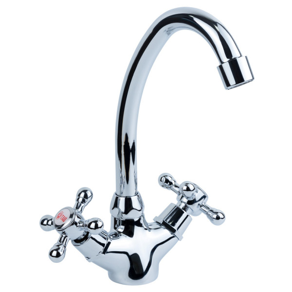 Змішувач оснащений аератором для економії води та обертовим виливом для зручності використання. Кран-букса запірного клапана забезпечує довгий термін служби виробу. Монтаж змішувача проводиться на виріб вертикальним способом.