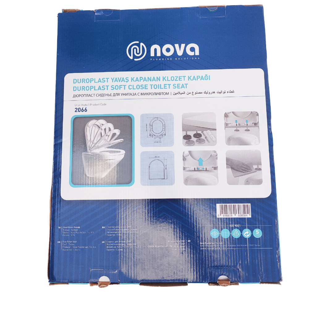 Кришка для унітазу з мікроліфтом Nova 2066 – сантехнічний виріб, який поєднує в собі комфорт, практичність і стиль. Кришка виготовлена з дюропласту, який має підвищену міцність. Кришка має ергономічну форму, що забезпечує комфортне використання. Nova 2066 оснащена мікроліфтом, який плавно опускає кришку, запобігаючи різким ударам.