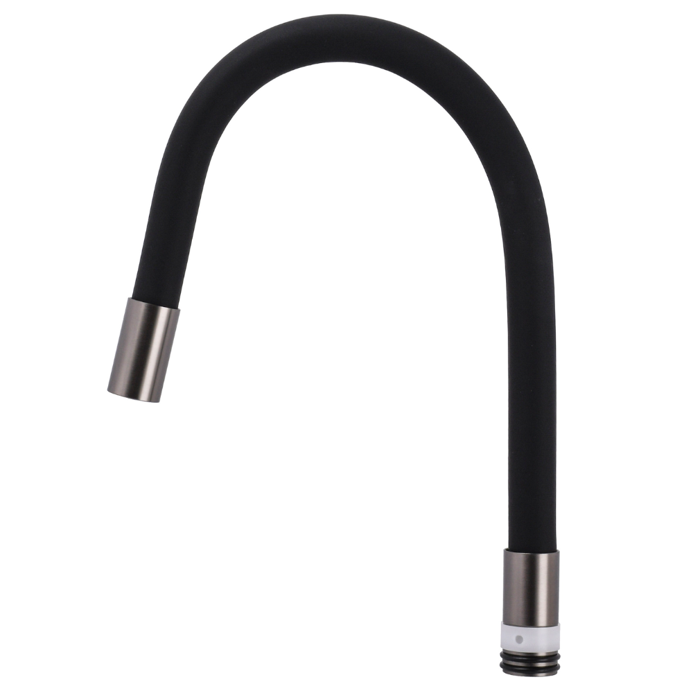 Гнучкий гусак (вилив) для змішувача Globus Lux 1/2" чорний/графіт призначений для встановлення на корпус змішувача. Для цього в ньому є стандартне різьбове з'єднання 1/2" з кільцями ущільнювачів, що забезпечують максимальну герметичність з'єднання. Виготовлений із нержавіючої сталі із силіконовим покриттям чорного кольору. Завдяки гнучкій конструкції виливу можна встановити довільну висоту.