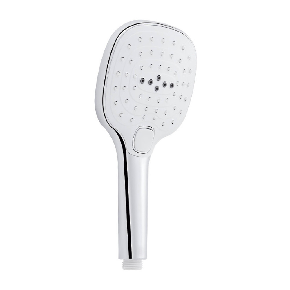 Лійка для ручного душу Britc HY004 овальної форми в кольорі хром, виготовлена з АБС-пластику. Працює в трьох режимах розпилення води. Для перемикання режимів є кнопка в середній частині лійки. Для під'єднання до душового шланга є зовнішнє підведення. Завдяки універсальному діаметру, ця лійка сумісна з будь-якими гнучкими шлангами для душу.